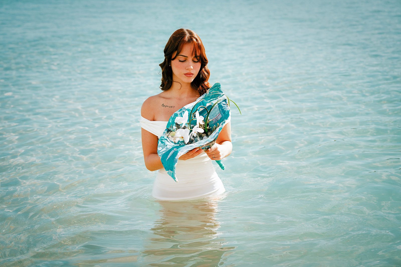 Shades of blue echo the sea, dissolving paper into water.