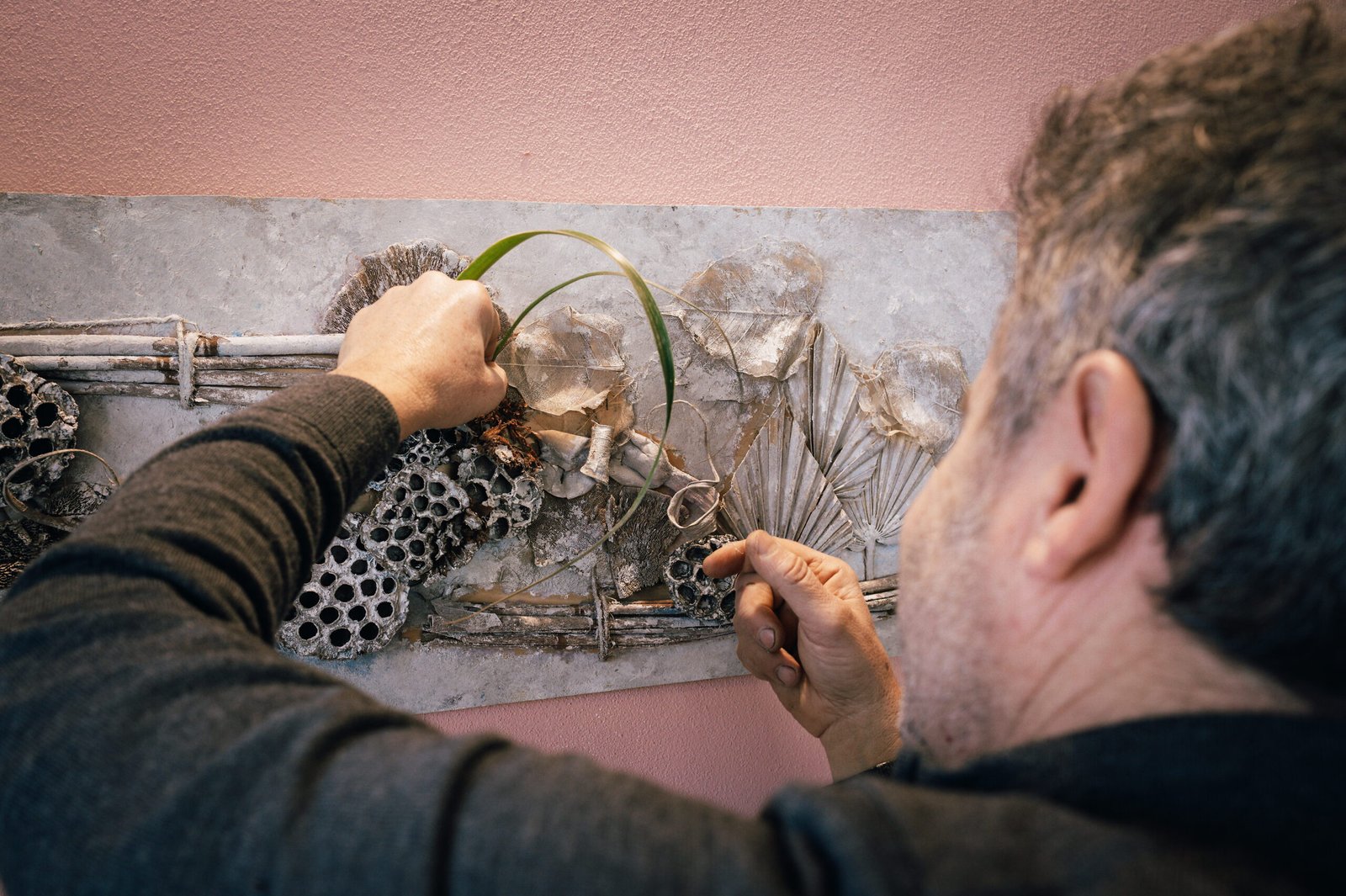 His work goes beyond the act of composing a bouquet — each arrangement becomes an artistic statement, a dialogue between space, emotion and form.